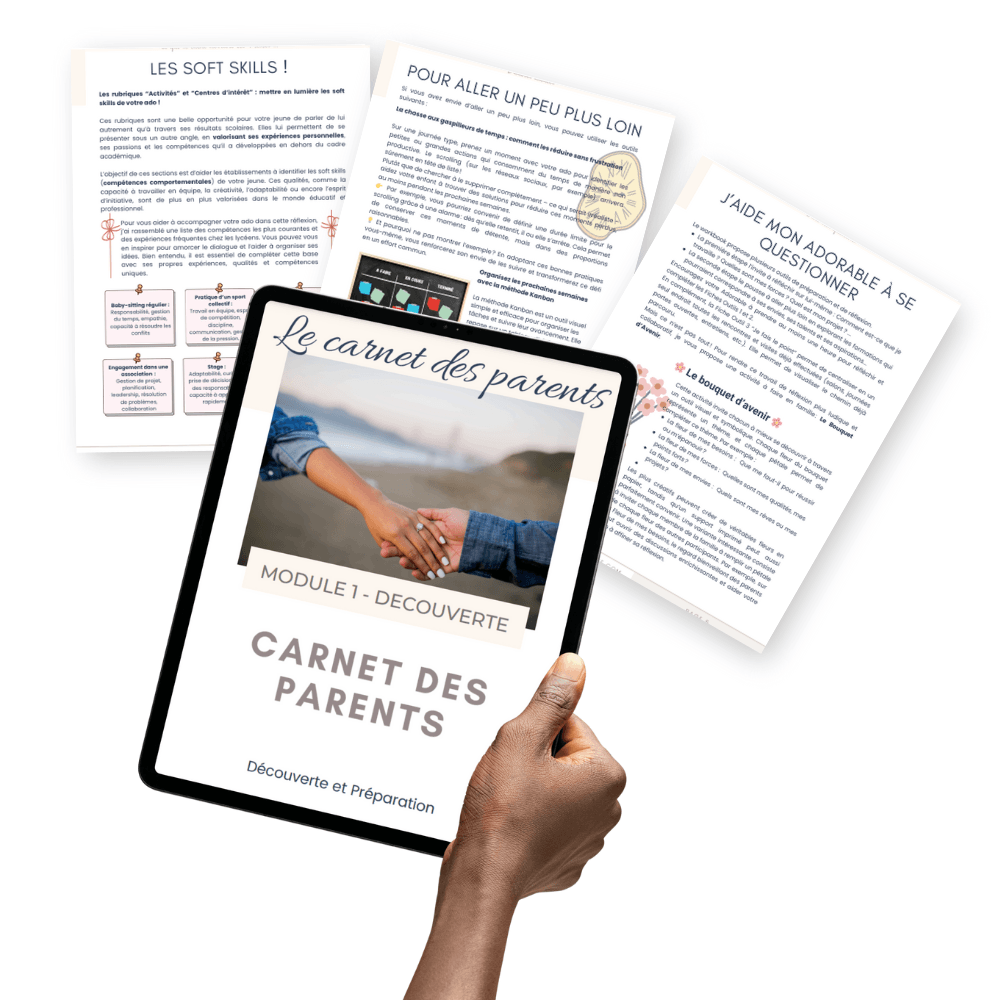 Vous pouvez aussi utiliser les outils que je partage dans le "Carnet des Parents" pour avoir des clés d'accompagnement et de mise au travail.