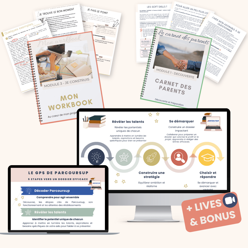 Une approche collaborative : vous guidez votre ado sans être intrusif(ve), tandis qu’il construit un dossier à son image. Parcoursup devient un projet motivant et la sérénité familiale revient.